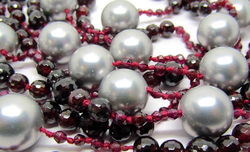 NECKLACE WITH GRAY BEAD ACCENTS-HAS 925 CLASP