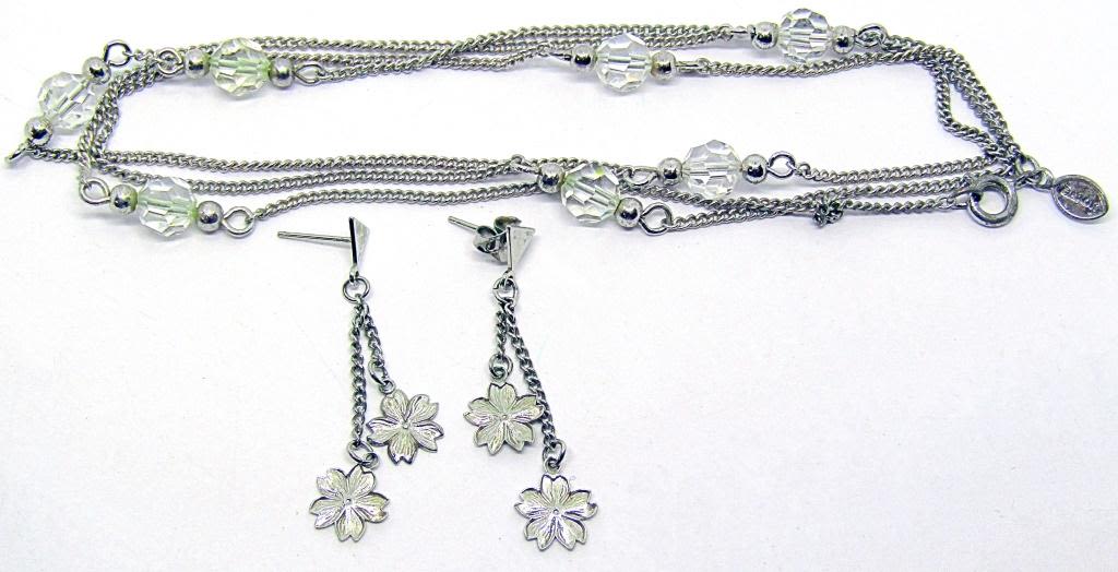 EARRINGS HAVE FLOWER DESIGN, NECKLACE MARKED AVON!