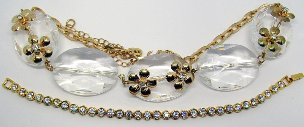 FLOWER DESIGN ON NECKLACE; BRIGHT WHITE RHINESTONES ON BRACELET!
