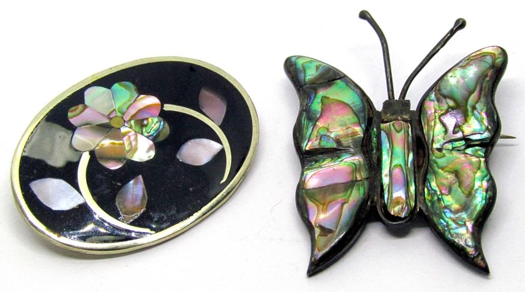 WITH ABILONE INLAY & (1)WITH FLOWER DESIGN WITH BLACK ONYX AND ABILONE INLAY DESIGN-TOTAL 7.5 DWT