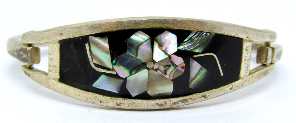 FLOWER INLAY DESIGN-BLACK ONYX AND ABILONE INLAY DESIGN-TOTAL 7.1 DWT