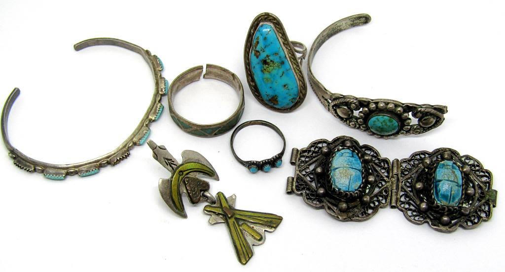 MANY NICE PIECES-LOADED WITH TURQUOISE-BROKEN/MISMATCHED PIECES TOTAL 35.1 DWT