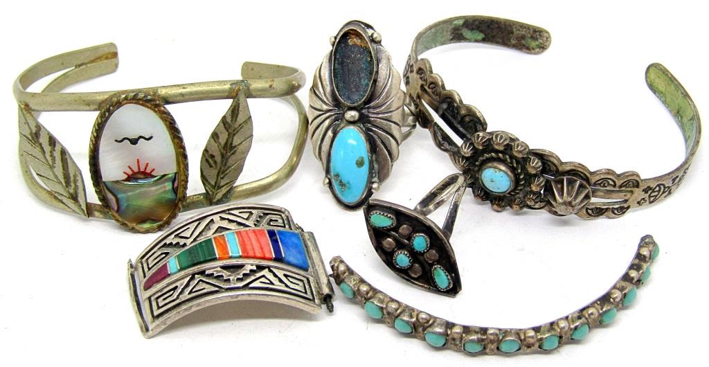 MANY NICE PIECES-LOADED WITH TURQUOISE-BROKEN/MISMATCHED PIECES TOTAL 35.3 DWT