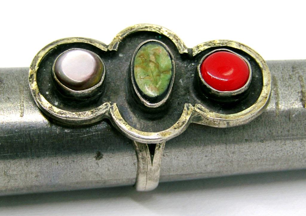 TURQUOISE-AND SHELL STONES-RING SIZE 7.5-TOTAL 4 DWT