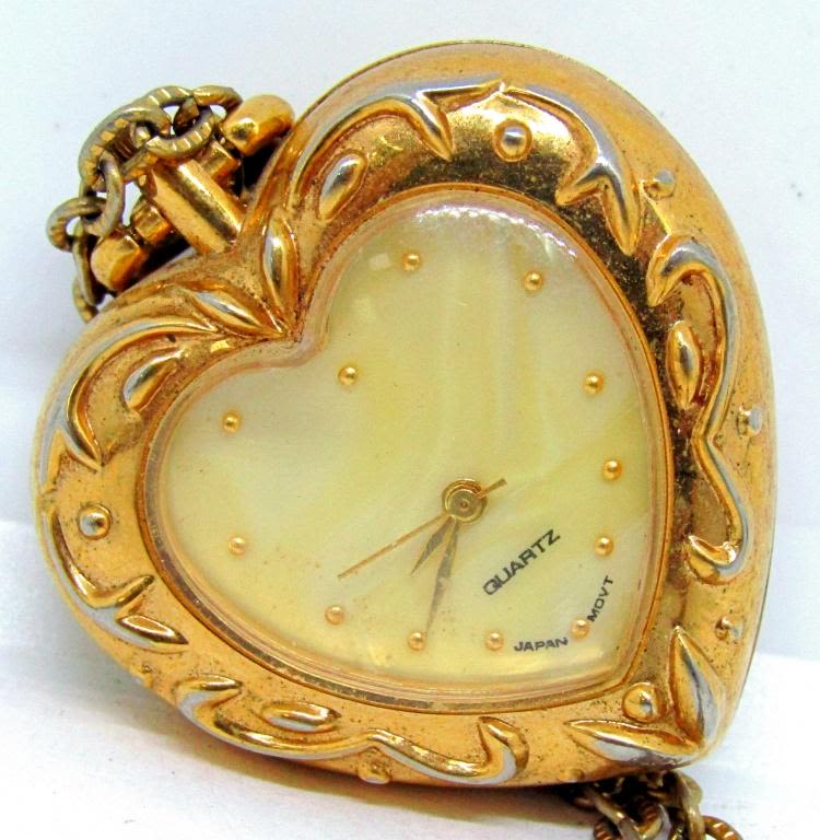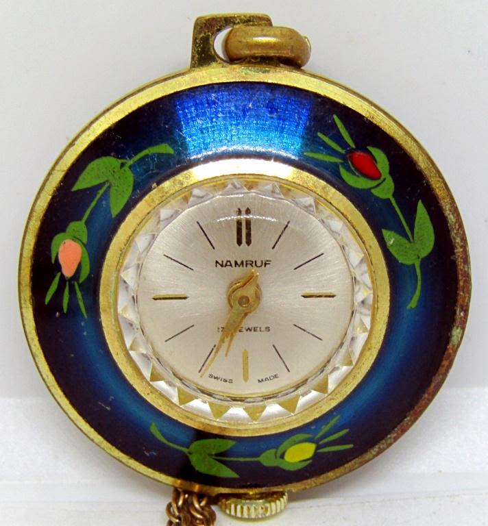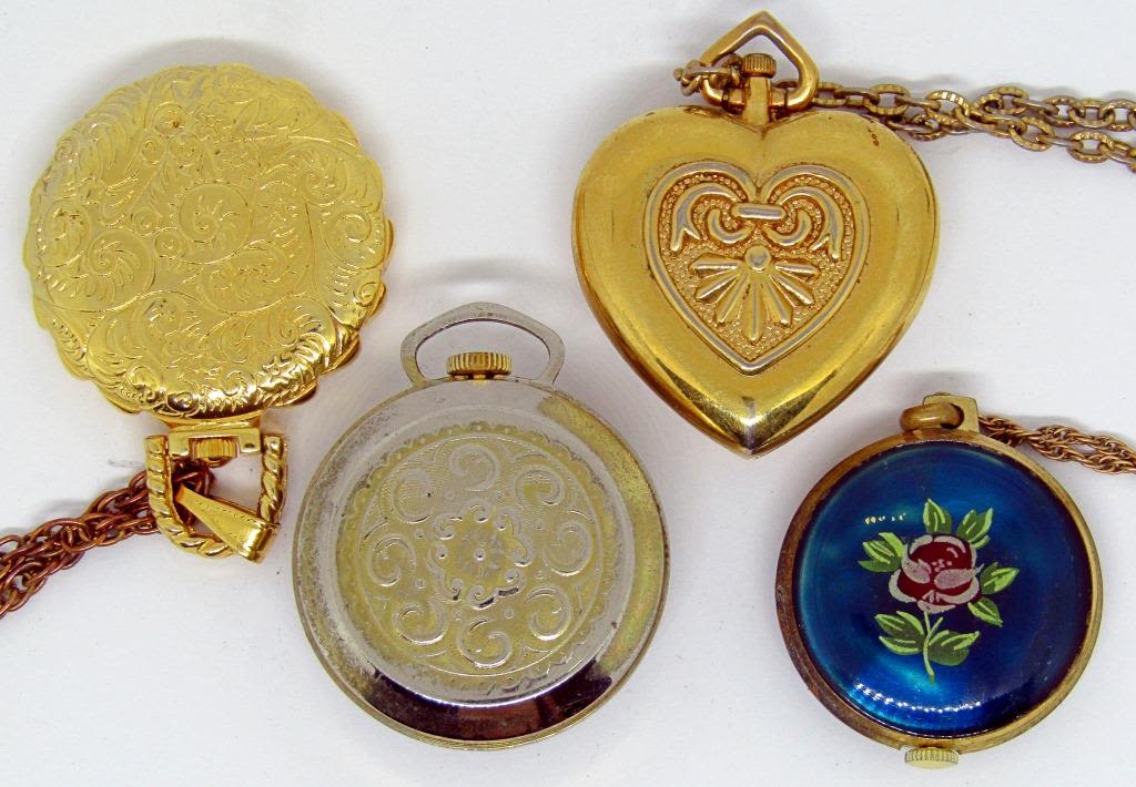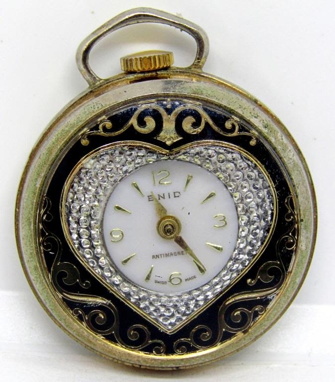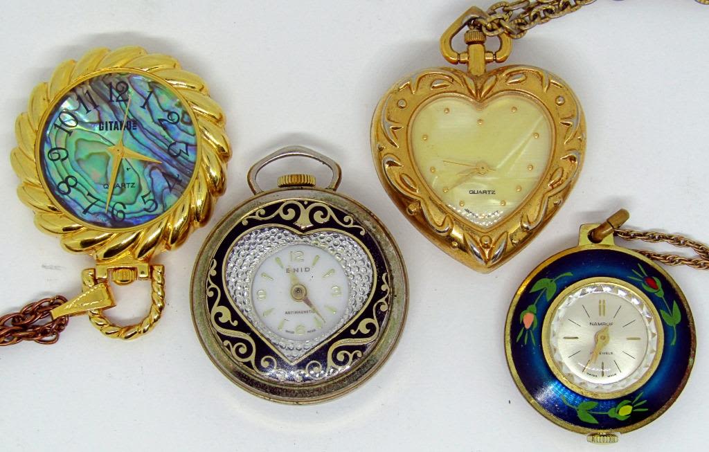 1 VINTAGE SWISS RED ENAMEL WATCH PENDANT NECKLACE, VINTAGE ENID POCKET WATCH PENDANT, 1 MARKED GITANO!