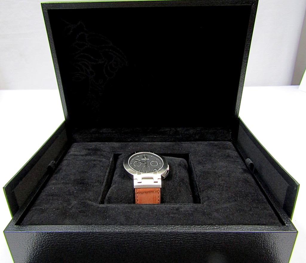 STAINLESS SPORT WATCH w/DEPLOYANT BUCKLE on LEATHER STRAP – 37 JEWEL MOVEMENT w/EXHIBITION BACK – UNUSED w/BOX & DIRECTIONS – MODEL BLG99