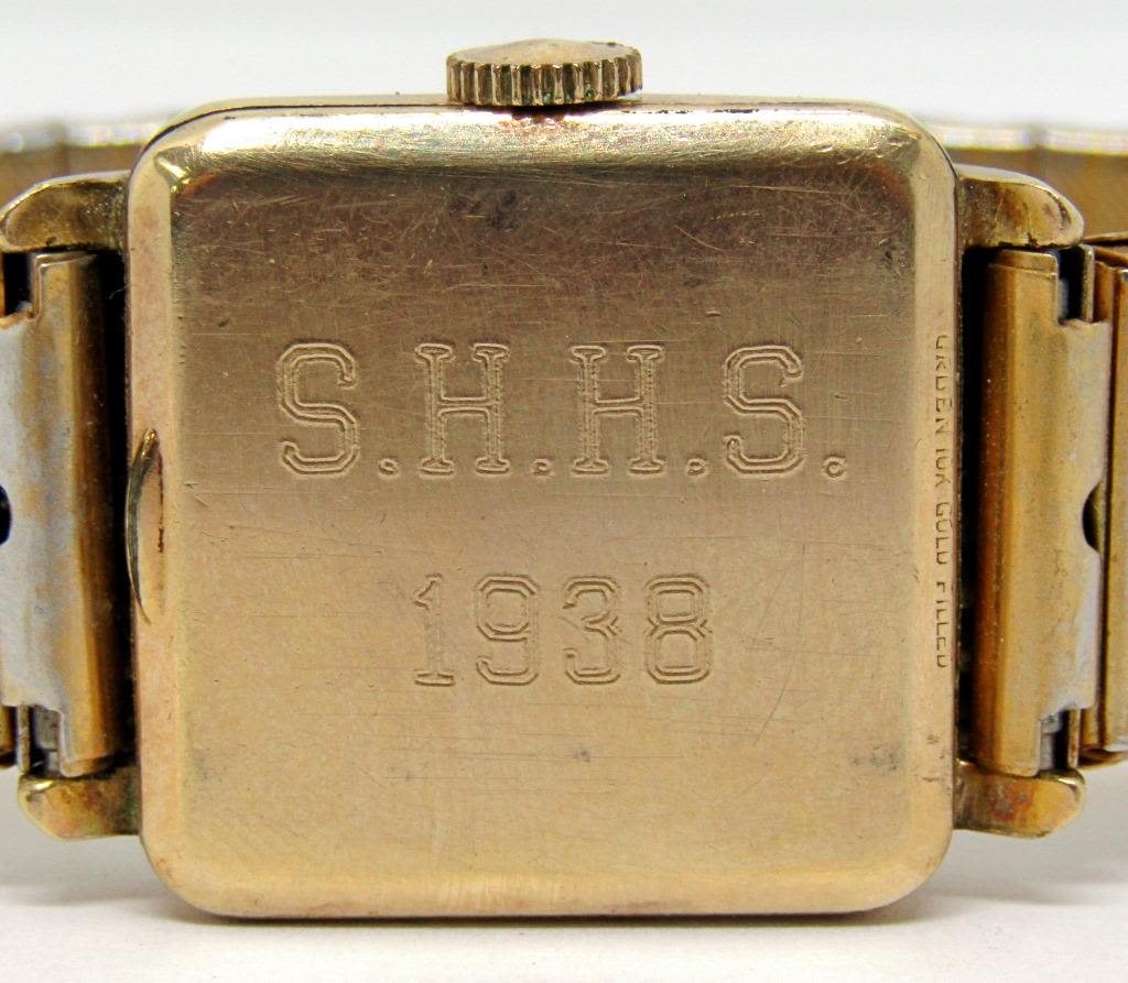 YELLOW GOLD FILLED CASE, 17 JEWEL MOVT, CAL 425ss, ENGRAVED BACK "SHHS 1938" – RUNNING