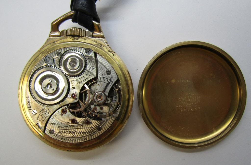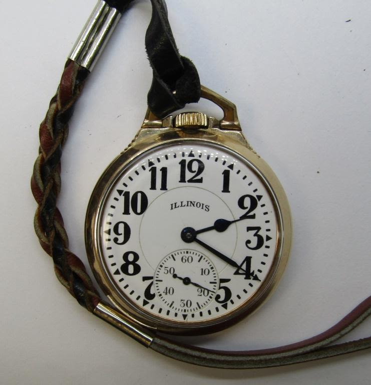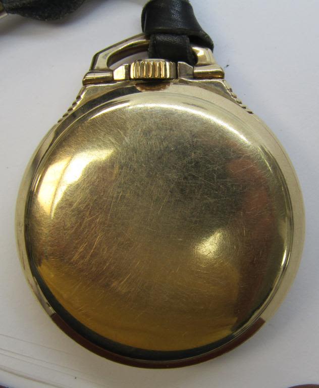 16 SIZE, 21 JEWEL, NICE PORCELAIN DIAL. SCREWBACK STAR GOLD FILLED CASE. LEATHER FOB – NICE WATCH – WORKING CONDITION