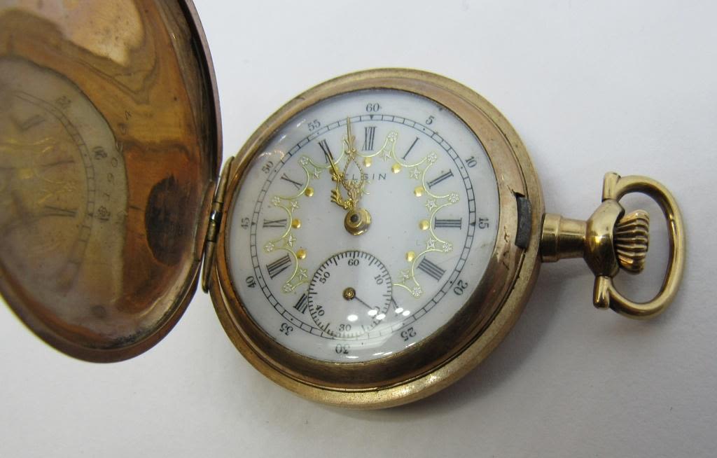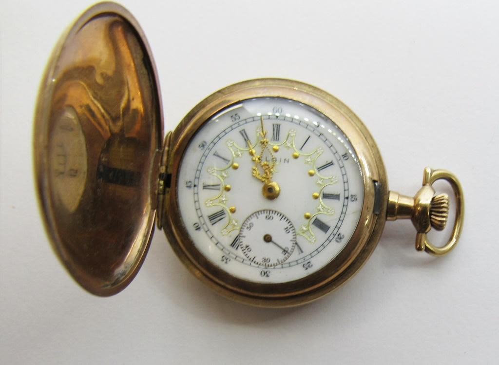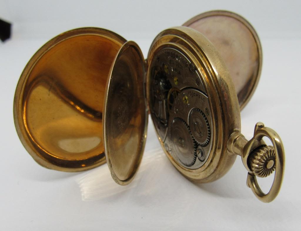 FANCY PORCELAIN DIAL, 15 JEWEL, PLAIN POLISHED GOLD FILLED CASE – WORKING CONDITION