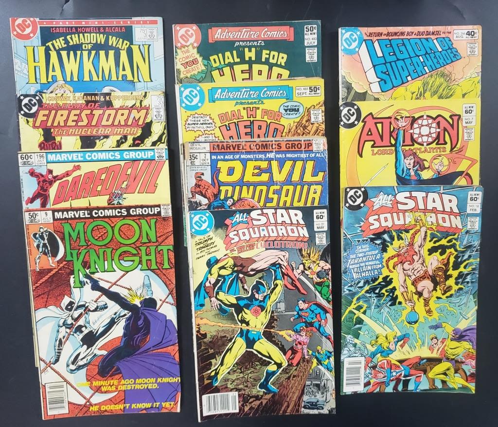 HAWKMAN, FIRESTORM, DAREDEVIL, MOON KNIGHT, DIAL "H" FOR HERO, DEVIL DINOSAUR, & OTHERS