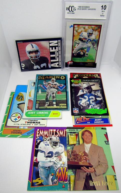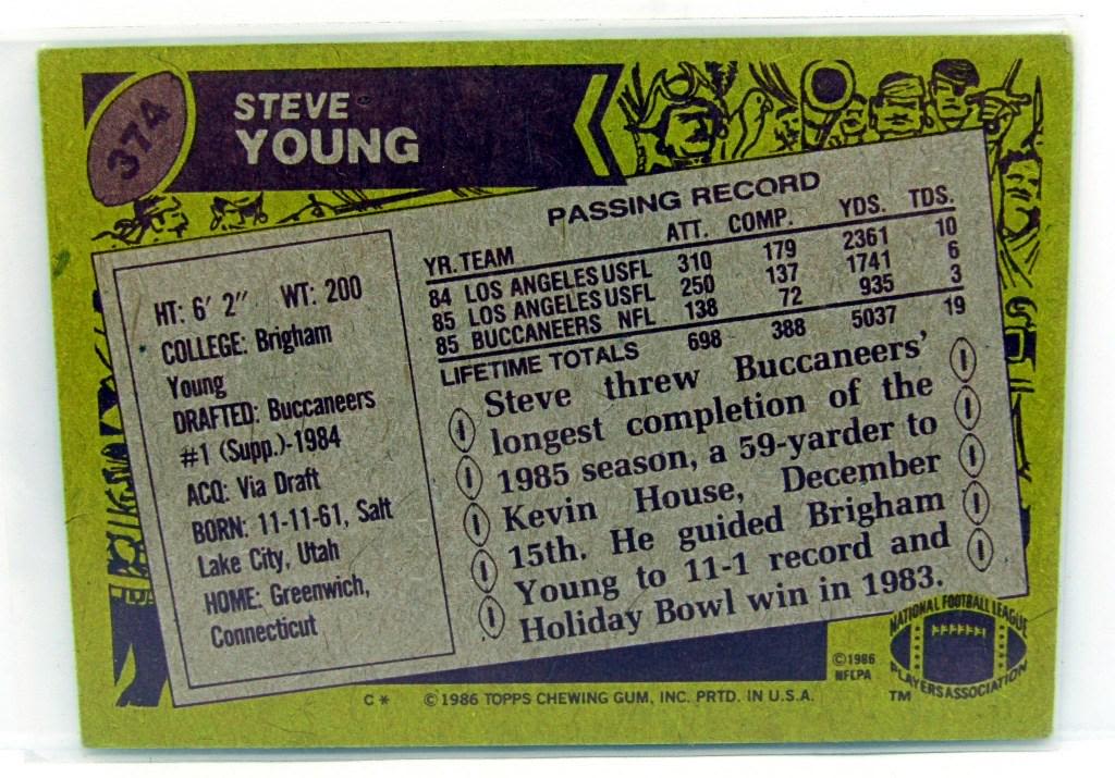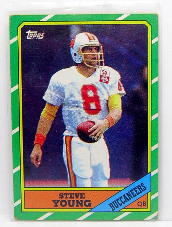plus 1986 TOPPS STEVE YOUNG ROOKIE, plus 9 OTHER FOOTBALL CARDS