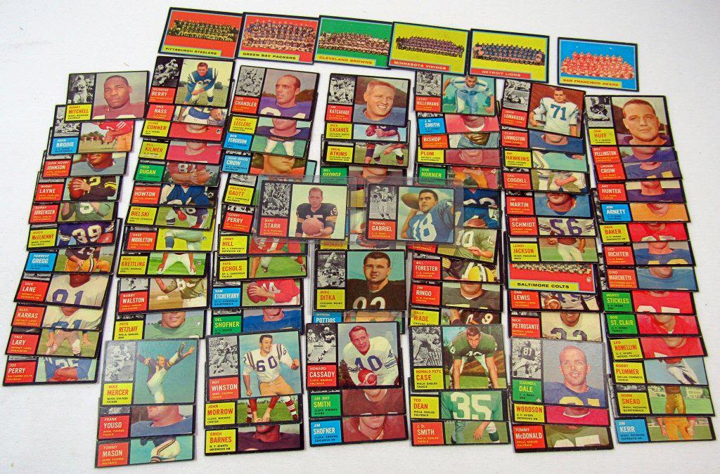 (15) HOLED & FEW w/INK X on FRONT – INCLUDES 7 TEAM CARDS, #17 DITKA ROOKIE VG w/LIGHT X MARK, #88 GABRIEL HOLED, #4 PERRY HOLED, #56 LARY, #58 KARRAS, #60 LANE, 63 BART STARR EX, #70 GREGG, #92 McELHENNY, #115 JURGENSEN