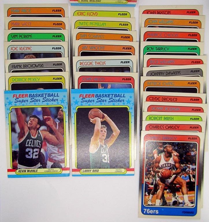 includes #80 EWING, #92 DREXLER, #43 RODMAN, #12 PARISH, #18 OAKLEY, #85 BARKLEY #2 BIRD STICKER, #9 McHALE STICKER, #8 MALONE STICKER