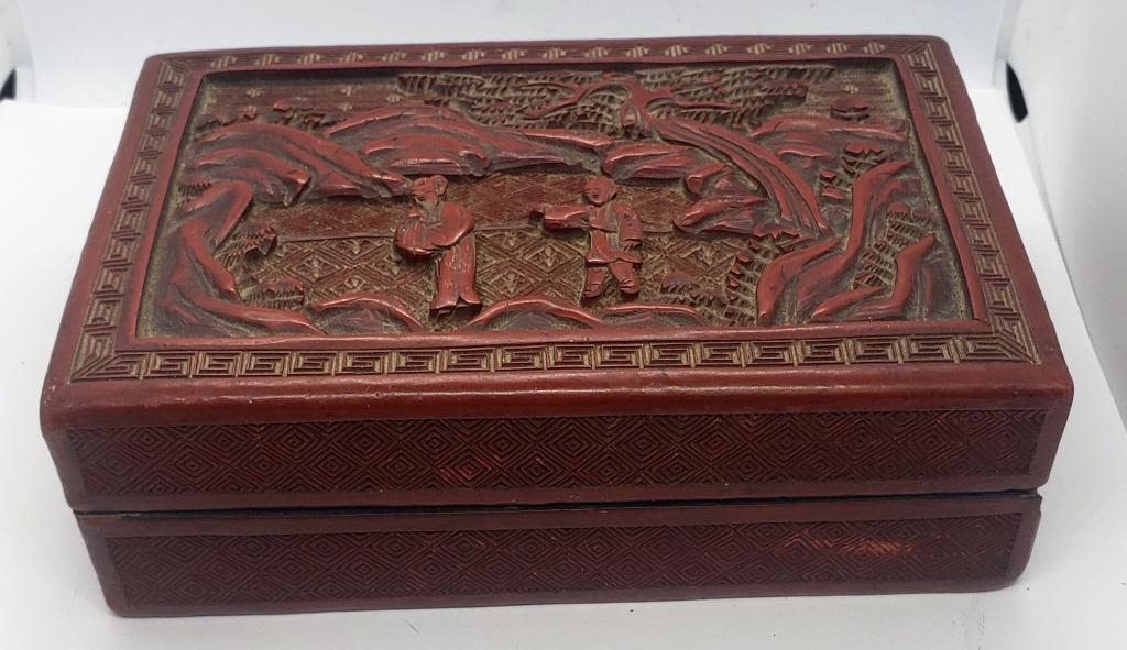 Cigarette Box Lacquer 5 1/2" x 3 3/4" x 1 3/4" TALL – SMALL CHIP ON CORNER – NICE