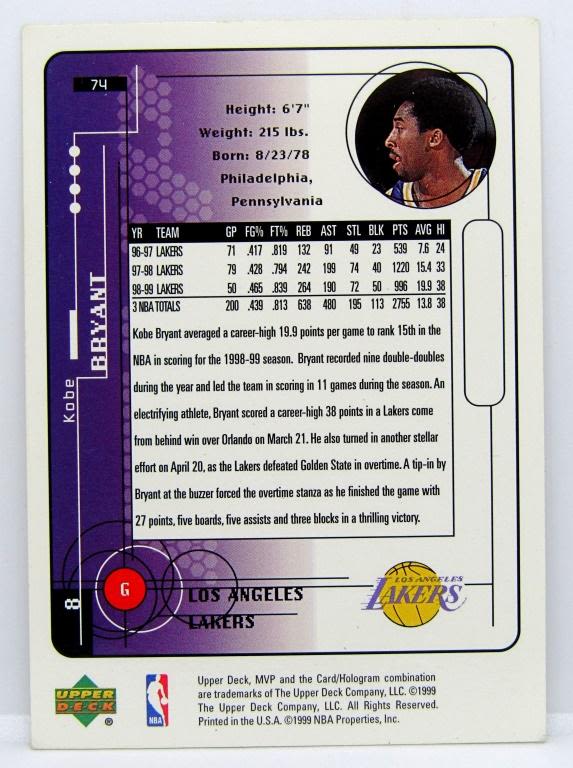 1996/97 SKYBOX #281, 1996/97 SKYBOX Z FORCE #142,(3) 99/00 VICTORY KOBE CARDS #74, 119, 120