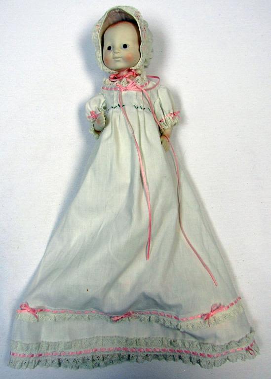 HARD PLASTIC, MARKED AS MADE IN USA, DRESS AND BONNET INCLUDED!