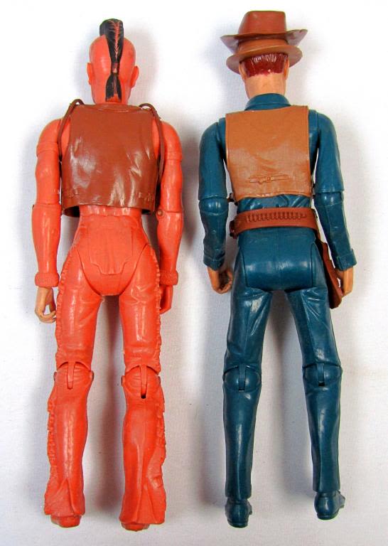INDIAN ACTION FIGURE WITH MOHAWK, CHEST GUARD AND VEST; 1966 JOHNNY WEST ACTION FIGURE WITH COWBOY HAT, GUN HOLSTER, VEST AND TIE!