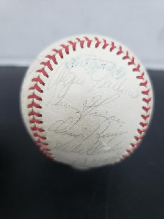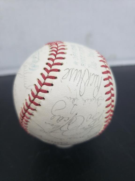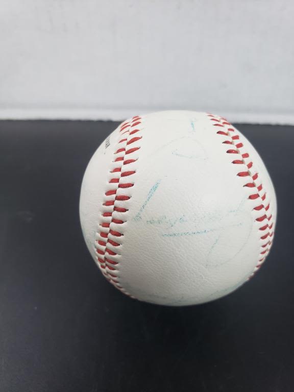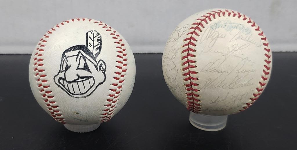 American League Macphail Baseball 28 Sigs – JEFF TORBORG mgr. on Sweet Spot / BO DIAZ / TED COX / RICK WISE plus FADDED INDIANS BALL with SIGNATURES but UNCLEAR – NO COA