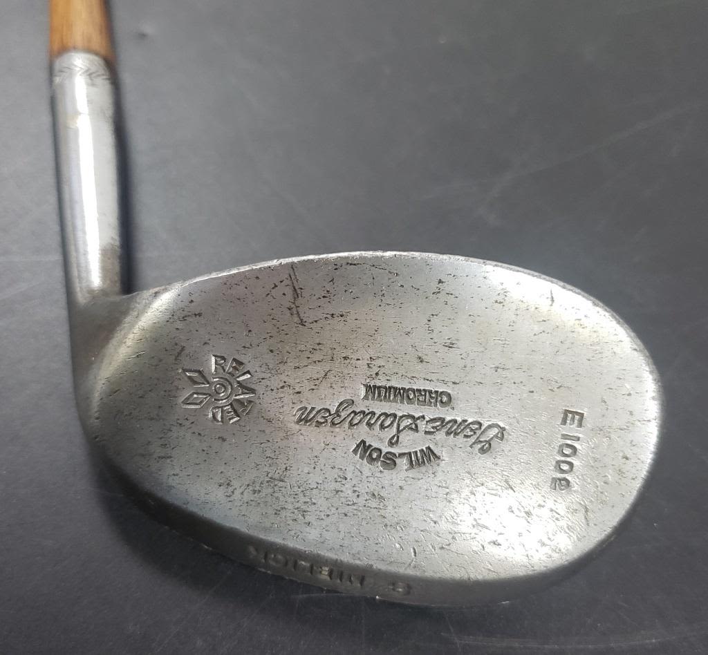 #8 NIBLICK LARGE ROUND SHAP with DOT PUNCHED PATTER FACE with E1002 & DESIGN STAMP – HICKORY WOOD SHAFT with LEATHER GRIP & ORIGINAL THREAD WRAP – IN GOOD ORIGINAL CONDITION – CIRCA 1920’s