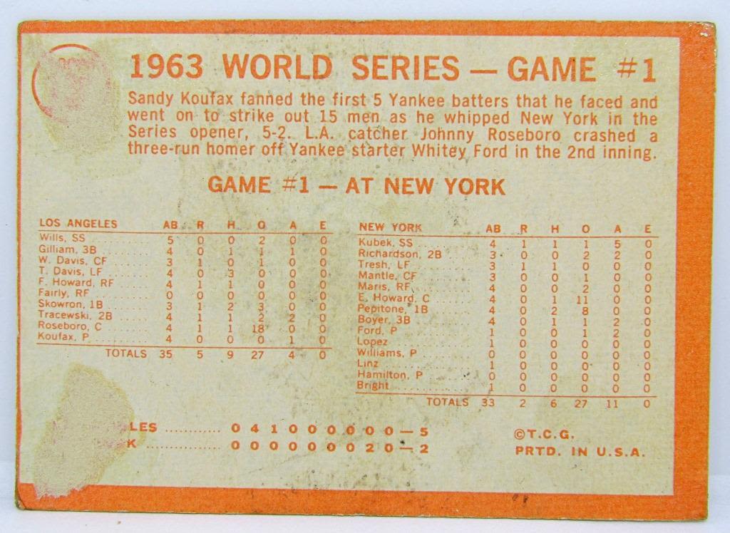 #35 MATHEWS, #155 SNIDER, #250 KALINE, #120 DRYSDALE, #260 F ROBINSON, #146 JOHN ROOKIE, KOUFAX World Series, plus 14 OTHER CARDS – ALL HAVE GLUE on BACKS