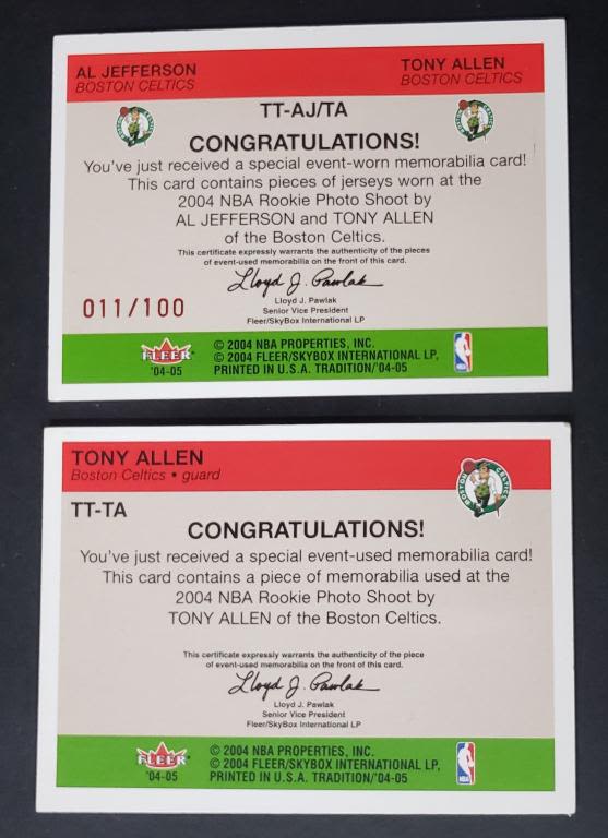 ROOKIE THROWBACK THREADS TONY ALLEN & DUAL THROWBACK THREADS AL JEFFERSON & TONY ALLEN
