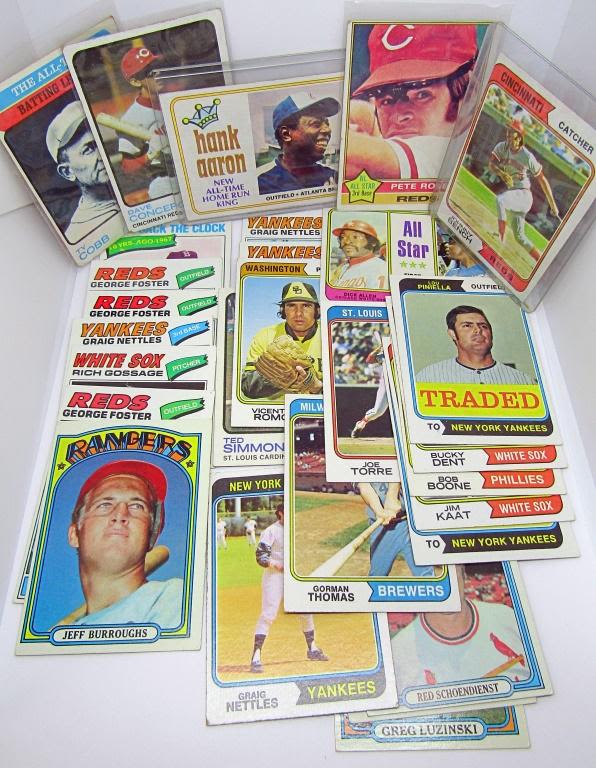 (4) 1972, (3) 1973, (12) 1974 w/#1 AARON, #10 BENCH, 1976 #240 ROSE, (9) 1977 mostly #20 & #347,