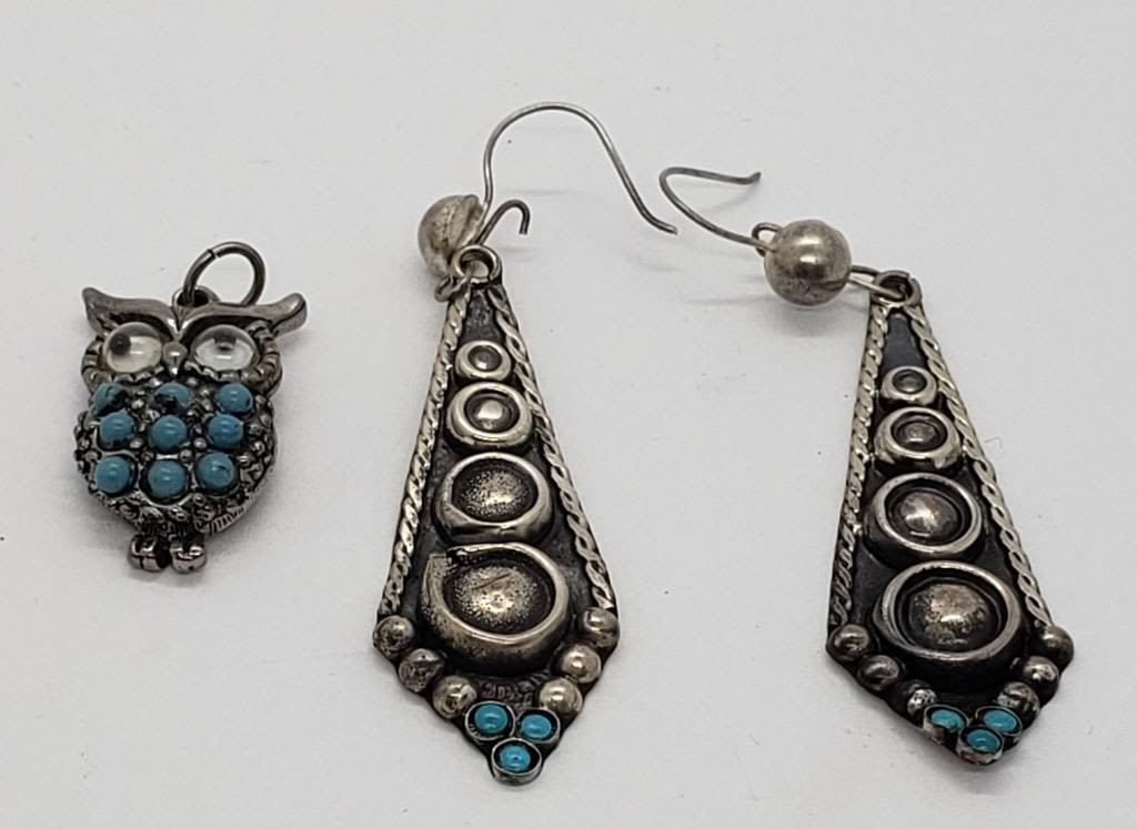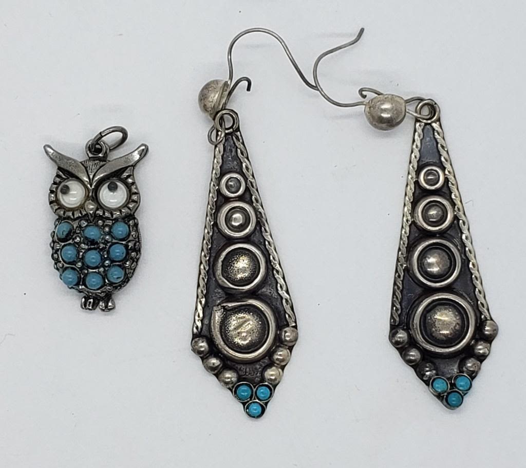 plus OWL PENDANT NOT STERLING w/GOOGLE EYES (2.4 DWT EARRINGS ONLY)