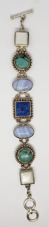 POSSIBLE MOTHER OF PEARL, TURQUOISE, CARVED BLUE LAPIS AND LAVENDER STONES-GORGEOUS PIECE!! TOTAL 34.6 DWT
