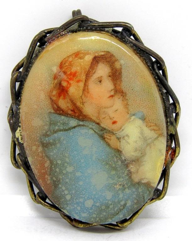(1) MOURNING CAMEO, (1) PAINTED MOTHER/CHILD, (1) CARVED SHELL
