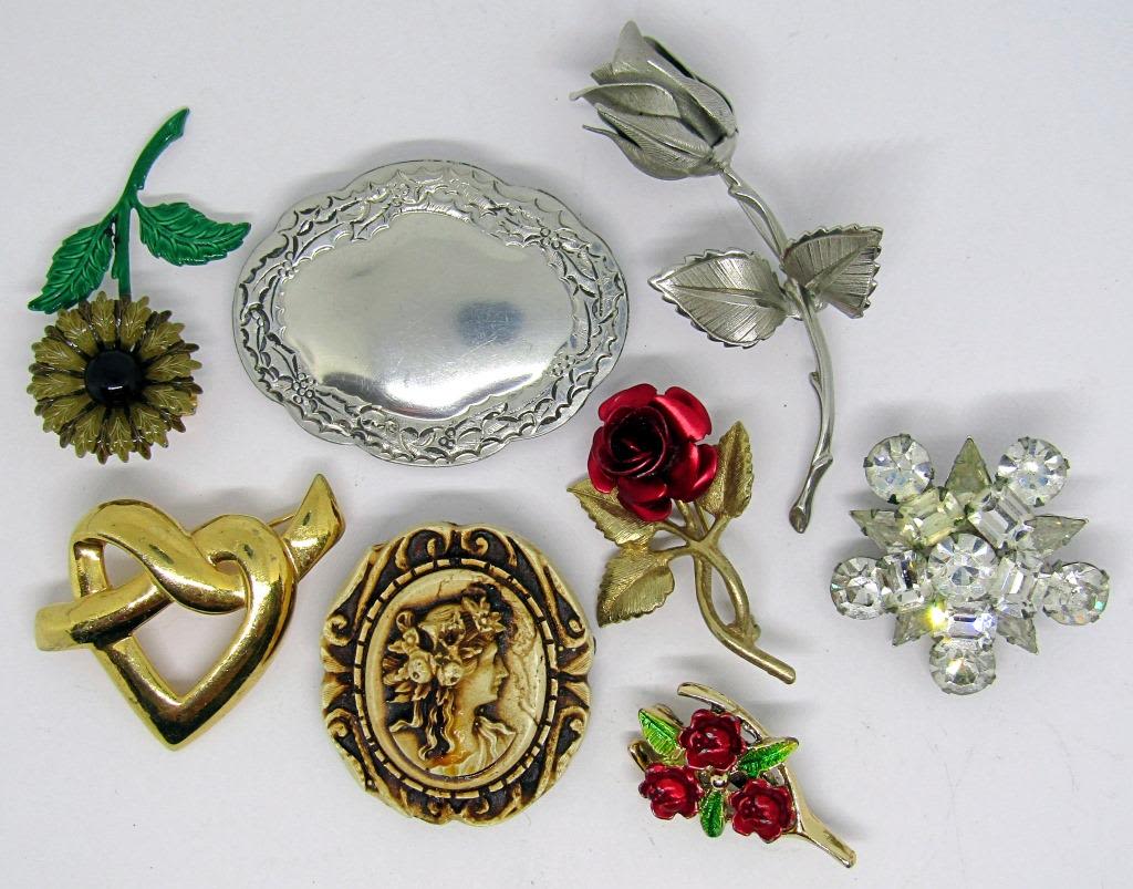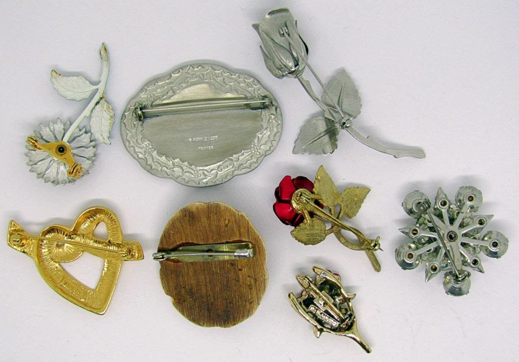(1) NAPIER HEART, (1) GIOVANNI ROSE, (1) KIRK STEIFF PEWTER & OTHERS