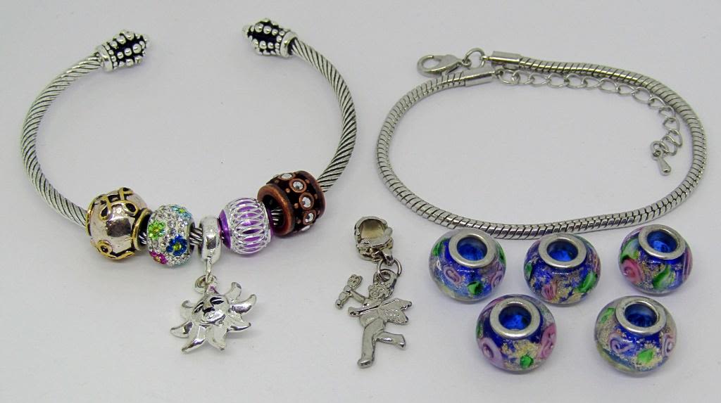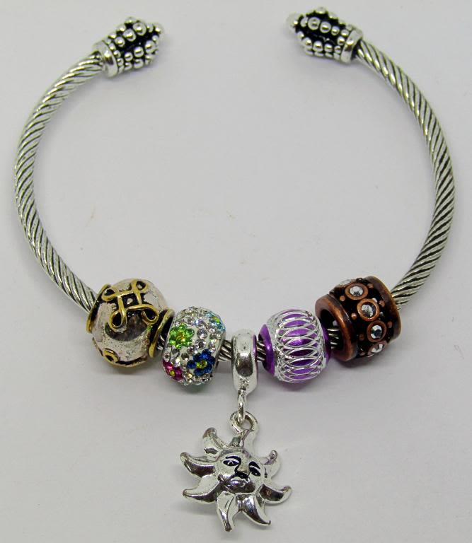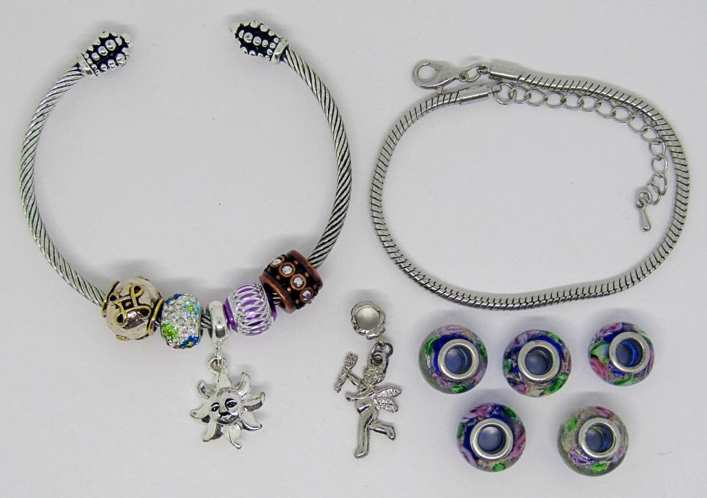 CUFF BRACELET & 8" CHAIN BRACELET w/CHARM SLIDES – LIKE NEW