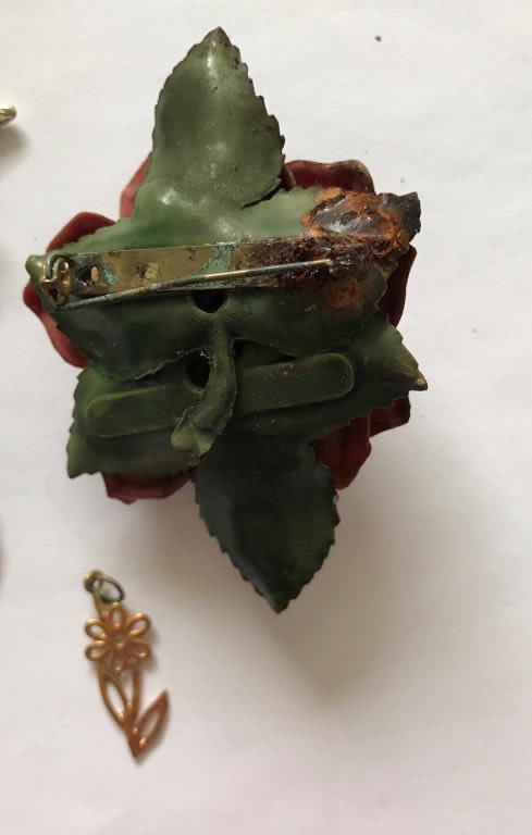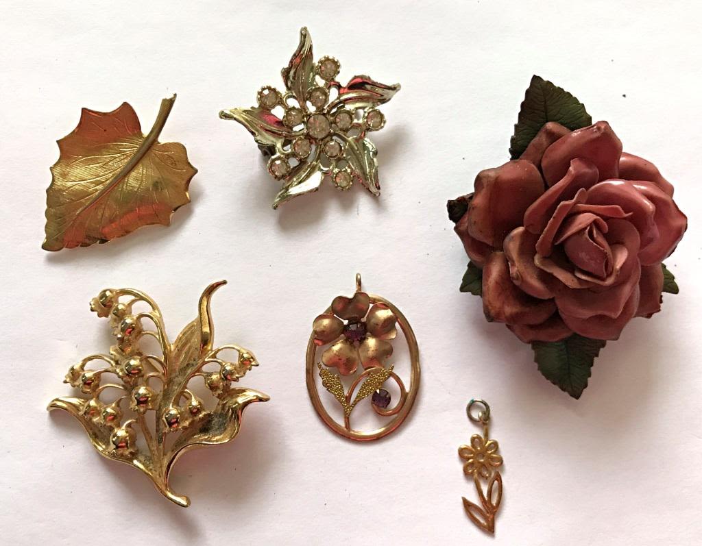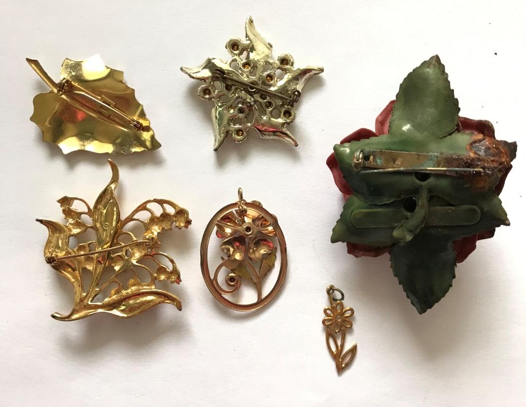4 BROOCHES + 2 PENDANTS~ LARGE BROOCH NEEDS CLEANED, RHINESTONES