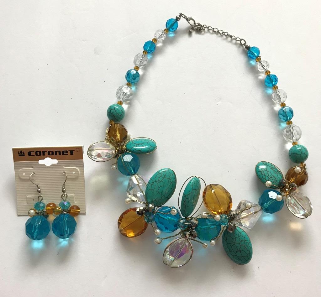 NECKLACE AND EARRINGS. EARRING PACK IS MARKED CORONET, CAN NOT CONFIRM BRAND*