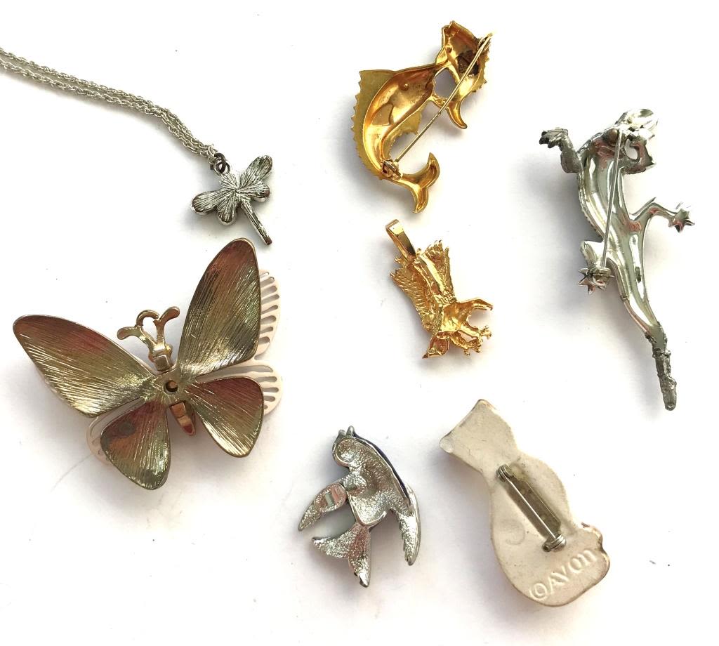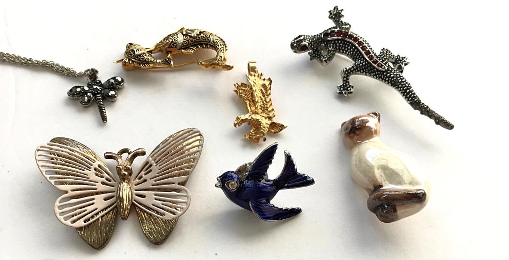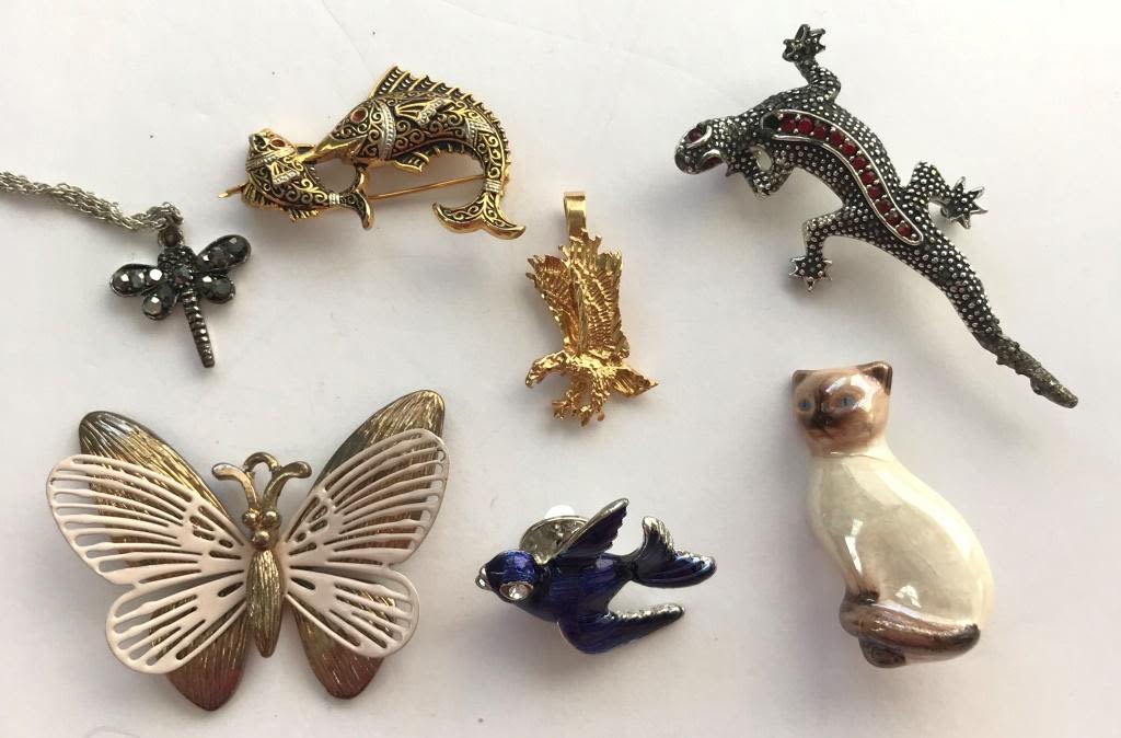 ANIMALS! 6 BROOCH/PINS 1 NECKLACE