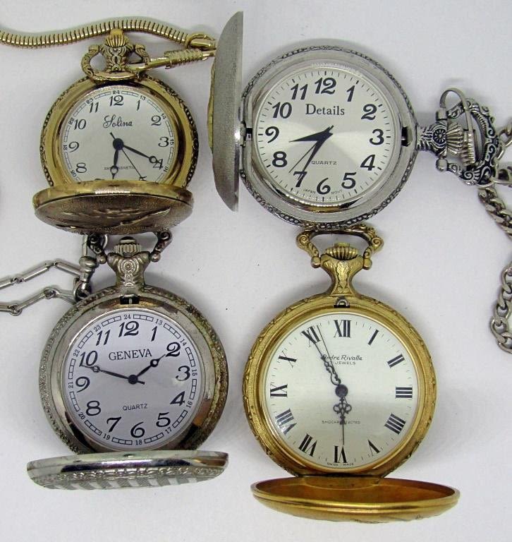 UNTESTED; DETAILS QUARTZ JAPAN MOVT, GENEVA QUARTZ, SOLINA ANTIMAGNETIC, ANDRE RIVALLE 17 JEWELS SHOCK PROTECTED SWISS MADE! SOME HAVE CHAINS!