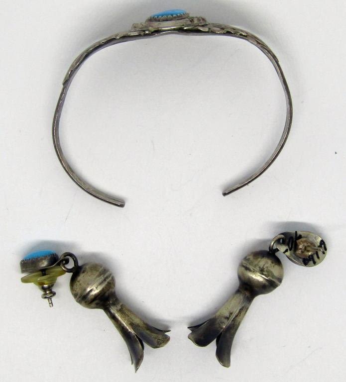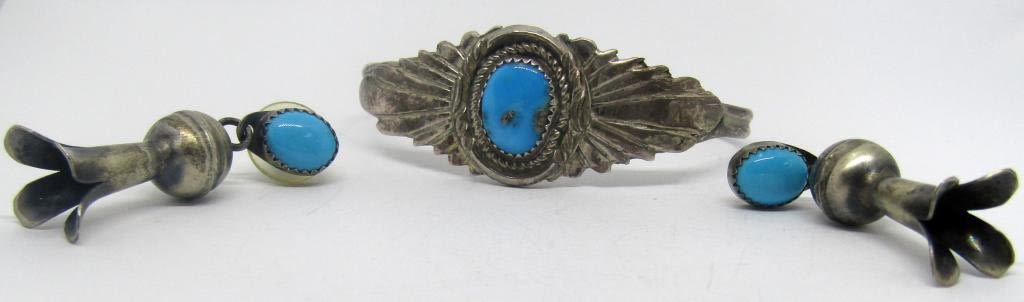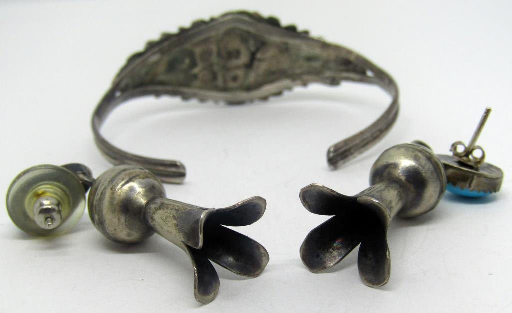w/TURQUOISE & NATIVE AMERICAN PIERCED EARRINGS w/TURQUOISE – 13.6 DWT
