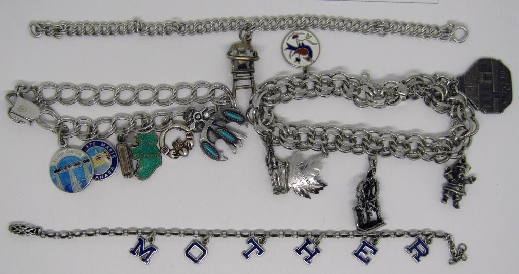 MOST CHARMS MARKED only few not – (1) BRACELET SPELLS "MOTHER" (1) w/BABY HIGH CHAIR – OTHER (2) VACATION CHARMS – 48.6 DWT