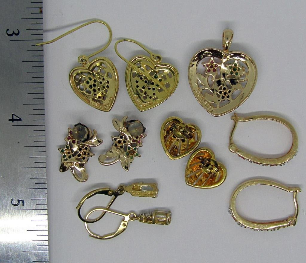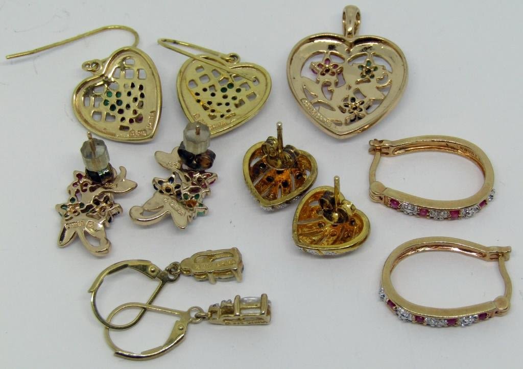 MATCHING HEART PENDANT & EARRINGS plus (4) PAIR PIERCED EARRINGS – NICE LOT – 13.7 DWT