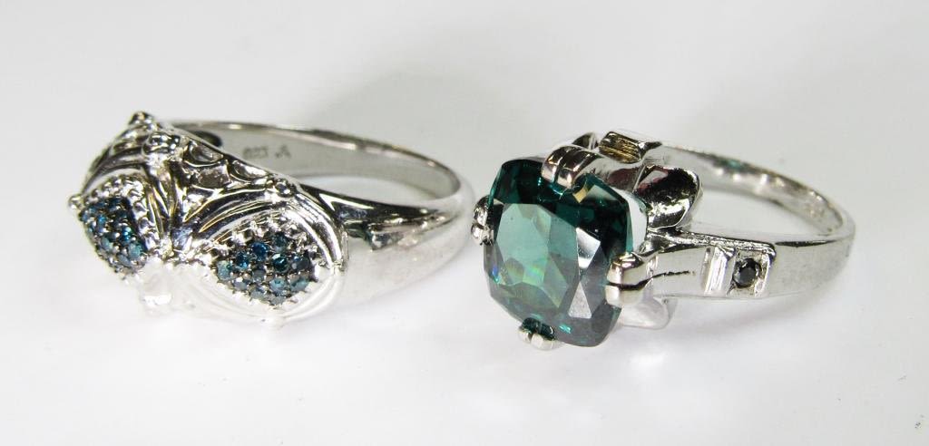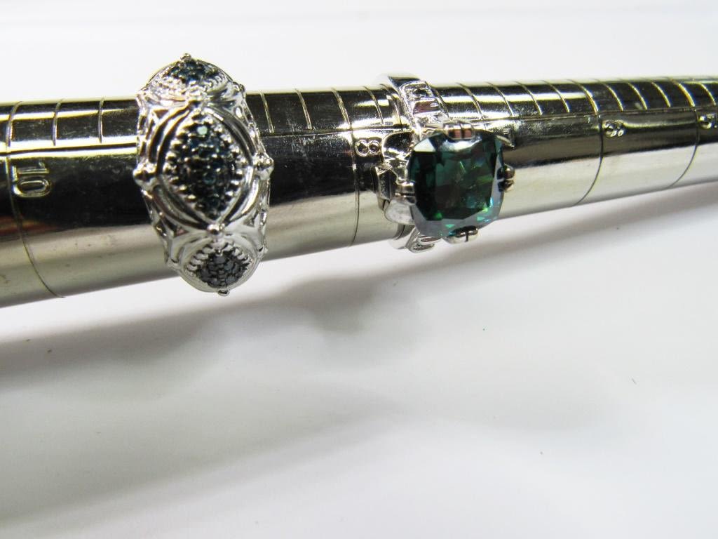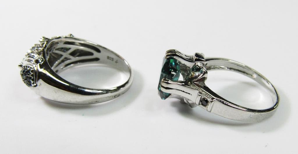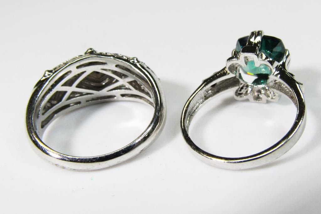 EMRALD GREEN STONE ACCENTS-BOTH PIECES LOOK NEW! RING SIZES 7.5 & 9-TOTAL 6.3 DWT