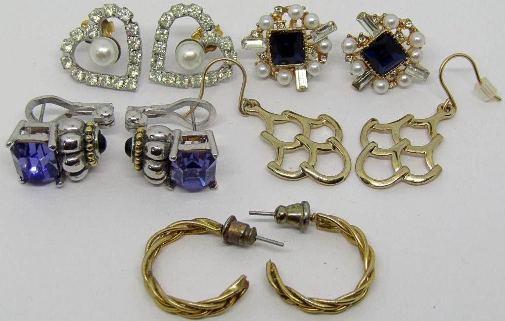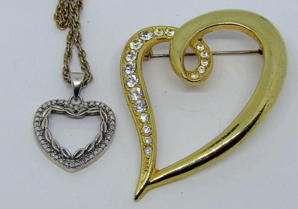 HEART NECKLACE, WHITE RHINESTONE BRACELET, 5 EARRING PAIRS, 1 HEART BROOCH, 1 BRACELET CUFF!