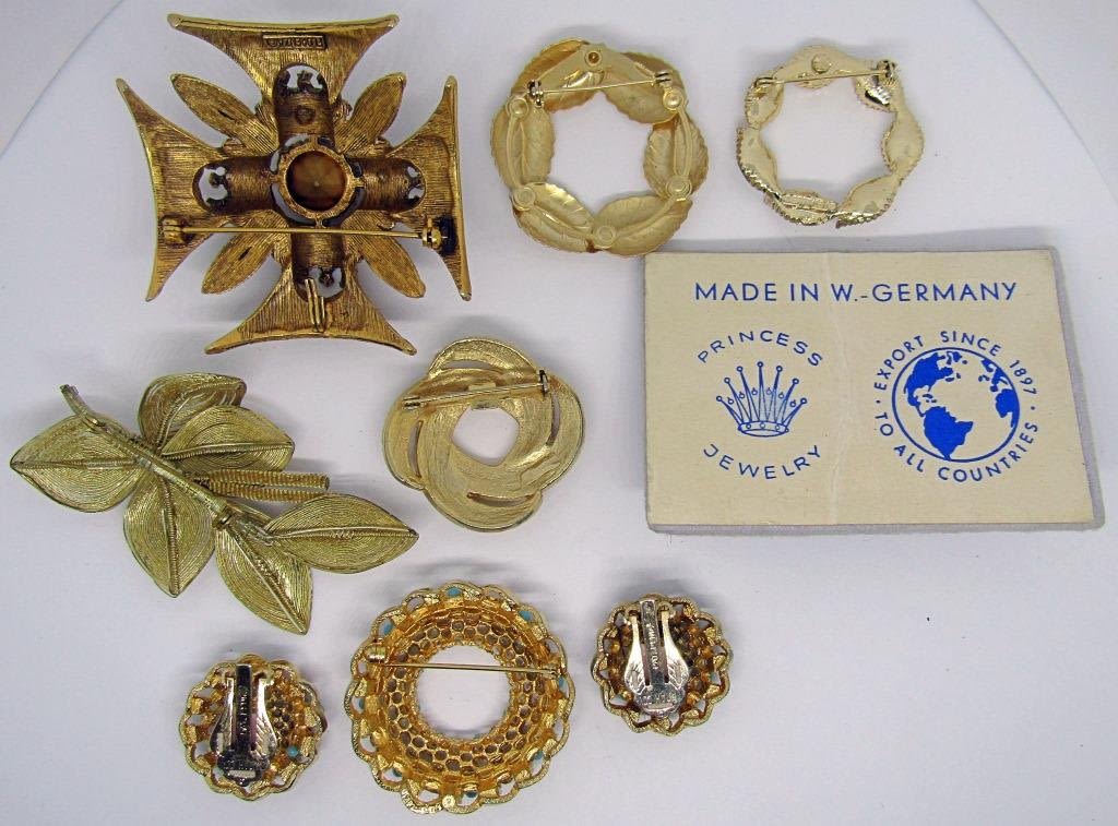 MATCHING SARAH COV CLIP ON EARRING-BROOCHE SET MARKED GERRY’S, FLORENZIA, W GERMANY