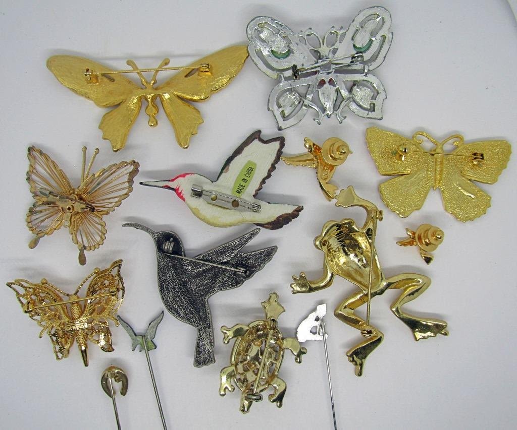 8 BROOCHES, 4 PINS, 3 HAT PINS