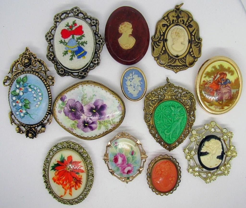 GOLD TONED BROOCHES FLOWERS AND CAMEOS & MORE!