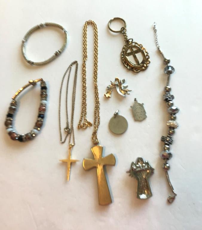 BRACELET, PIN BROOCHES, NECKLACE, ANGEL, CROSSES