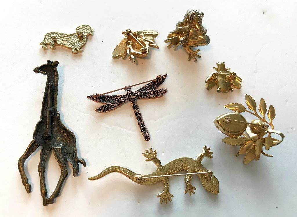 FROG AVON BEE DOG GIRAFFE HORSEFLY, BUMBLEBEE ON FLOWER, LIZARD, TRIFAIR BEE WITH RHINESTONES
