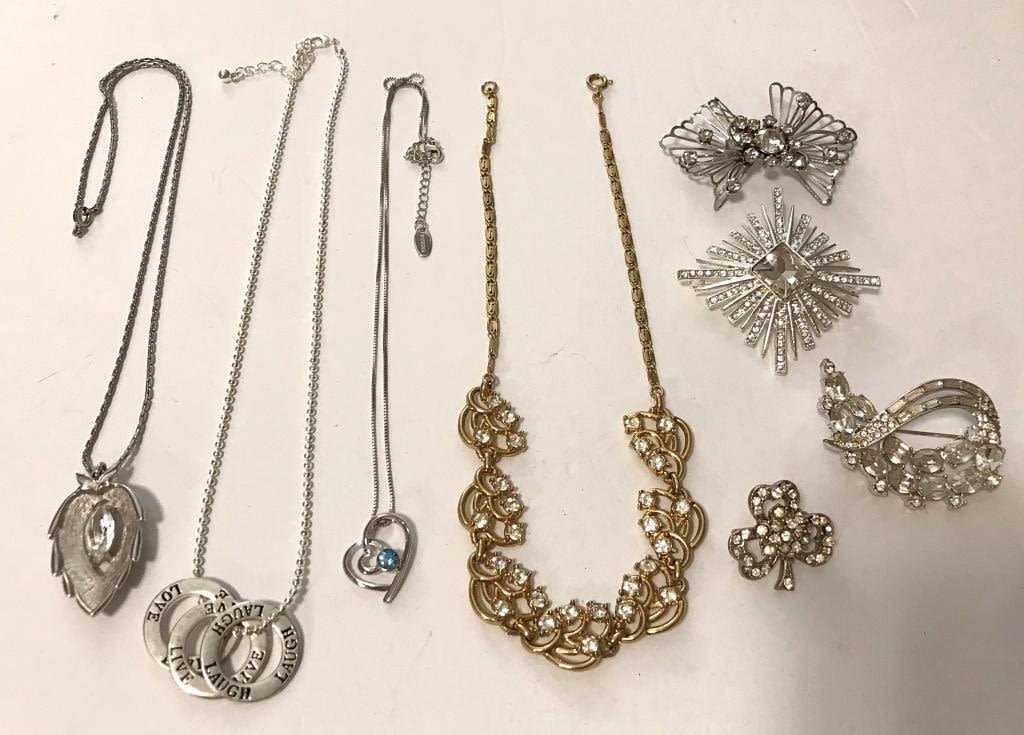 7 W/ RHINESTONES, CLEAR AND BLUE, 3 LEAF CLOVER, 1 SARAH COVENTRY