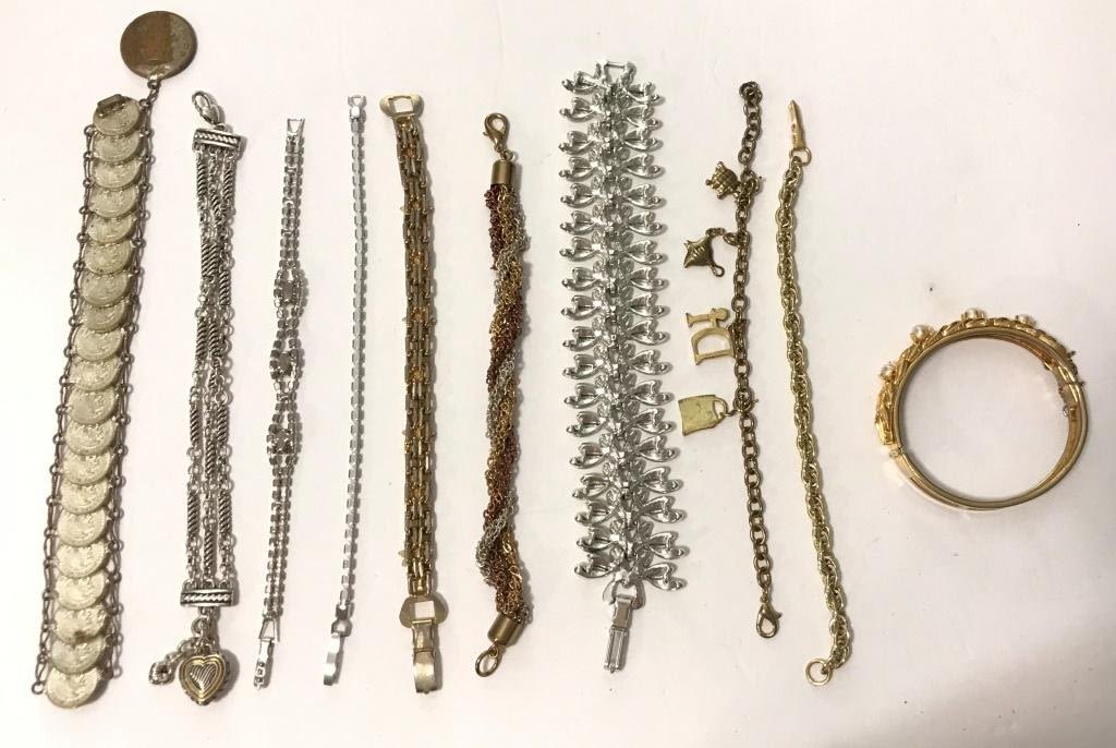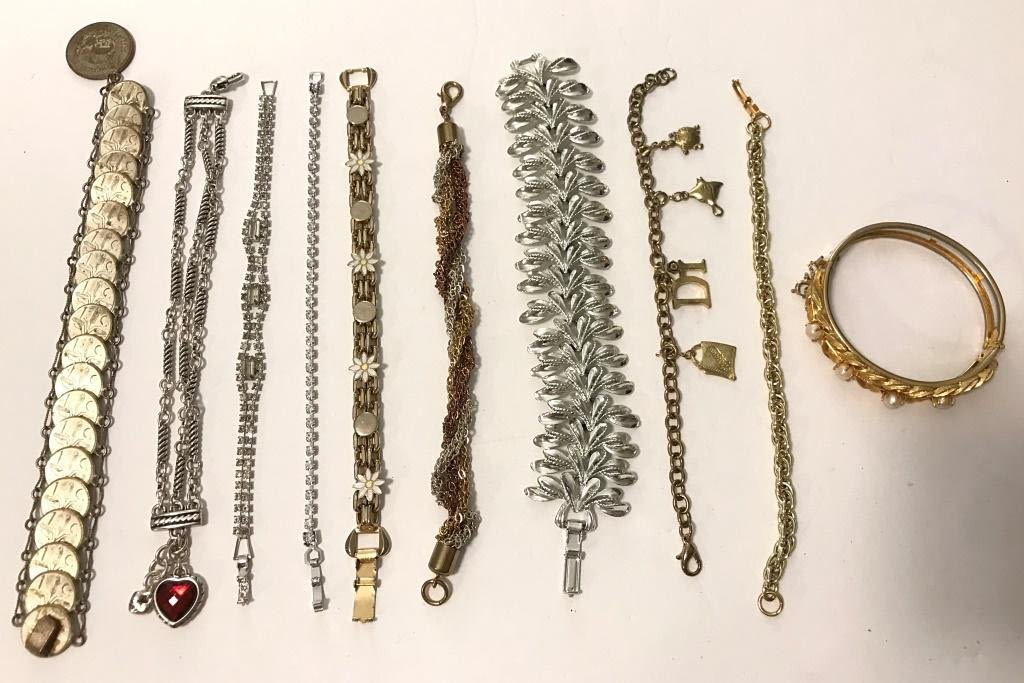 ONE W CHARM DI, COIN BRACELET, RHINESTONES, HEARTS, FLOWERS, TWISTED CHAINS