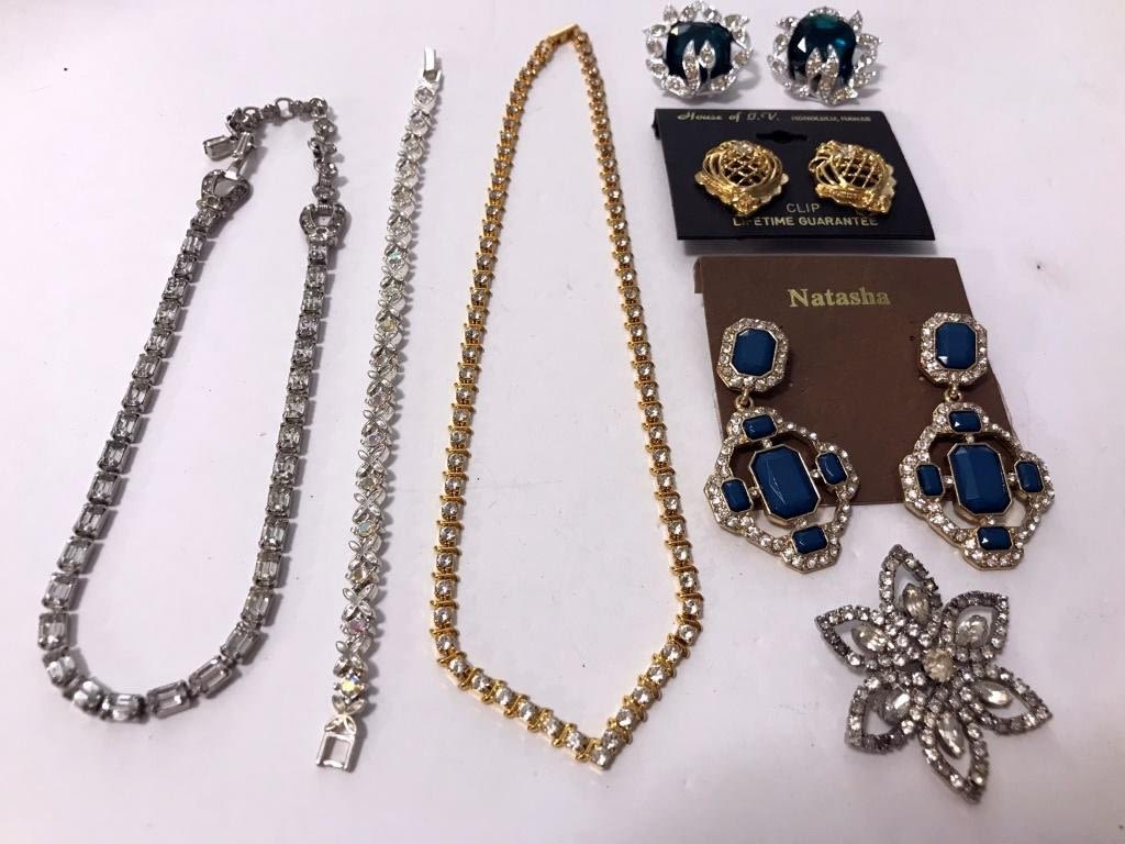 (BROOCH IS WEISS )(1 MARKED DENBE) 3 NECKLACES, 3 PAIRS OF EARRINGS 1 BROOCH