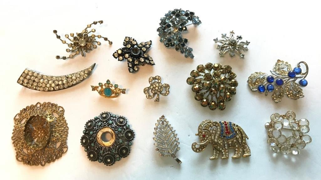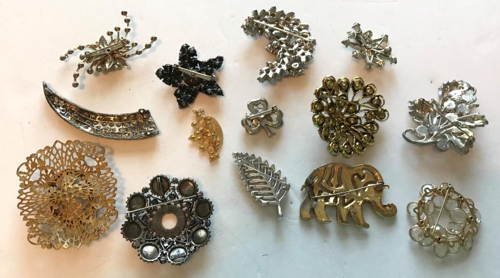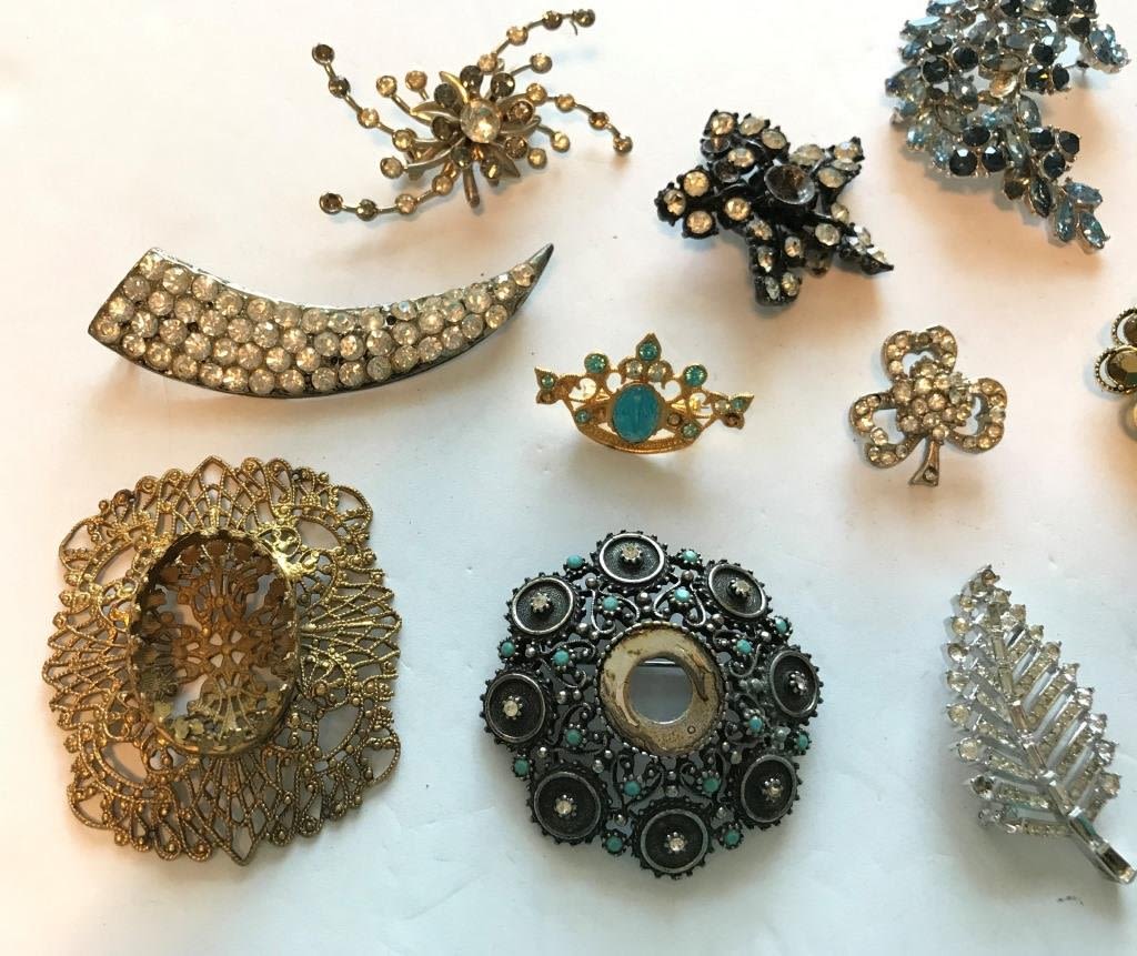 1 FLORENZA, 2 TRIFARI, 1PJO MISSING RHINESTONE/RHINSTONES OR CLIP IS BROKEN- SEE PHOTOS