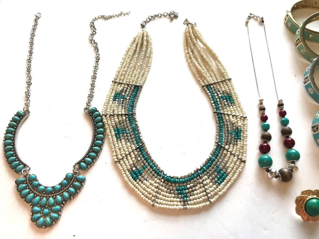 3 NECKLACES, 4 BRACELETS, 1 PAIR OF EARRINGS